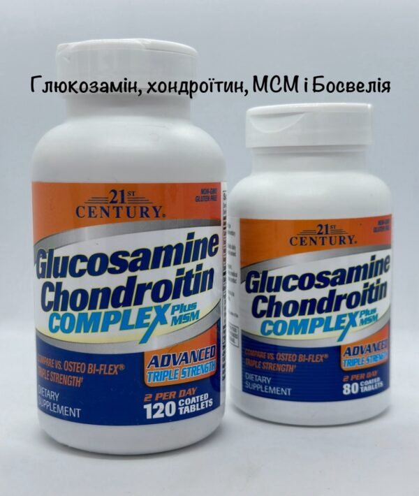 🦴 Глюкозамін + Хондроїтин + МСМ — підтримка здоров’я суглобів, 21st Century (120 капсул)