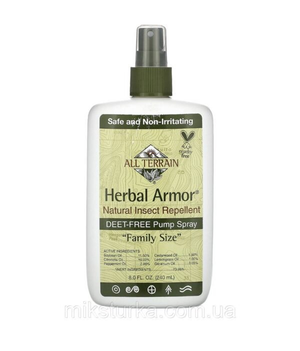 Довіряйте захист своїх дітей і родини перевіреним натуральним засобам. All Terrain Herbal Armor — це ефективний спрей проти комарів, мошок і москітів, безпечний навіть для малюків від 6 місяців.