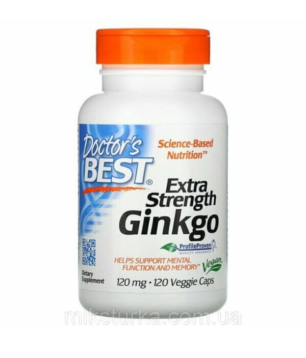 Формула від Doctor’s Best (США) містить 1200 мг високоякісного екстракту гінко білоба, стандартизованого за вмістом флавоноїдів і терпенів 🌿
