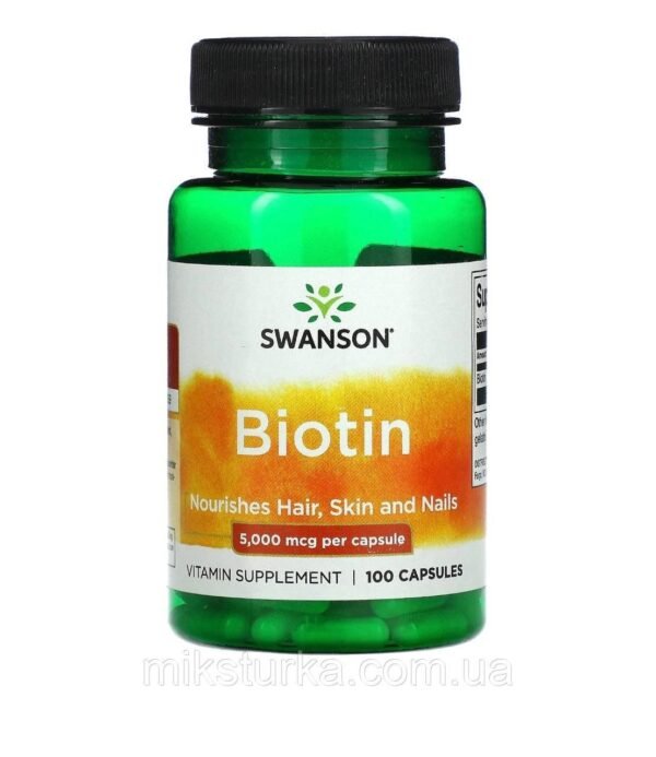 Формула Swanson Biotin 5000 mcg має високу концентрацію, що ідеально підходить для щоденного догляду зсередини 🌿