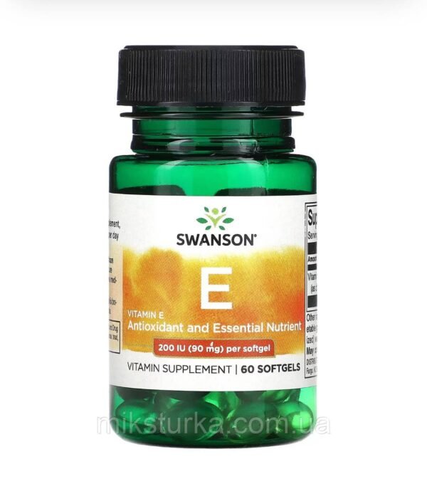 Добавка від Swanson (США) містить 90 мг (200 IU) натурального вітаміну E у зручних м’яких капсулах для оптимального засвоєння 🌿